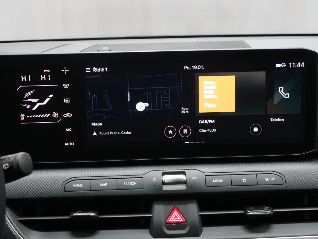 Multimediální centrum vozu s barevným displejem pro poslech hudby, rádia, ovládání funkcí a zobrazení informací o jízdě.