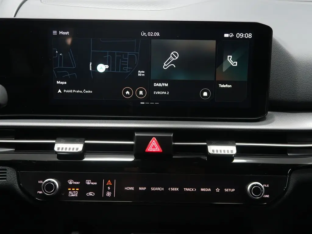 Multimediální centrum vozu s barevným displejem pro poslech hudby, rádia, ovládání funkcí a zobrazení informací o jízdě.