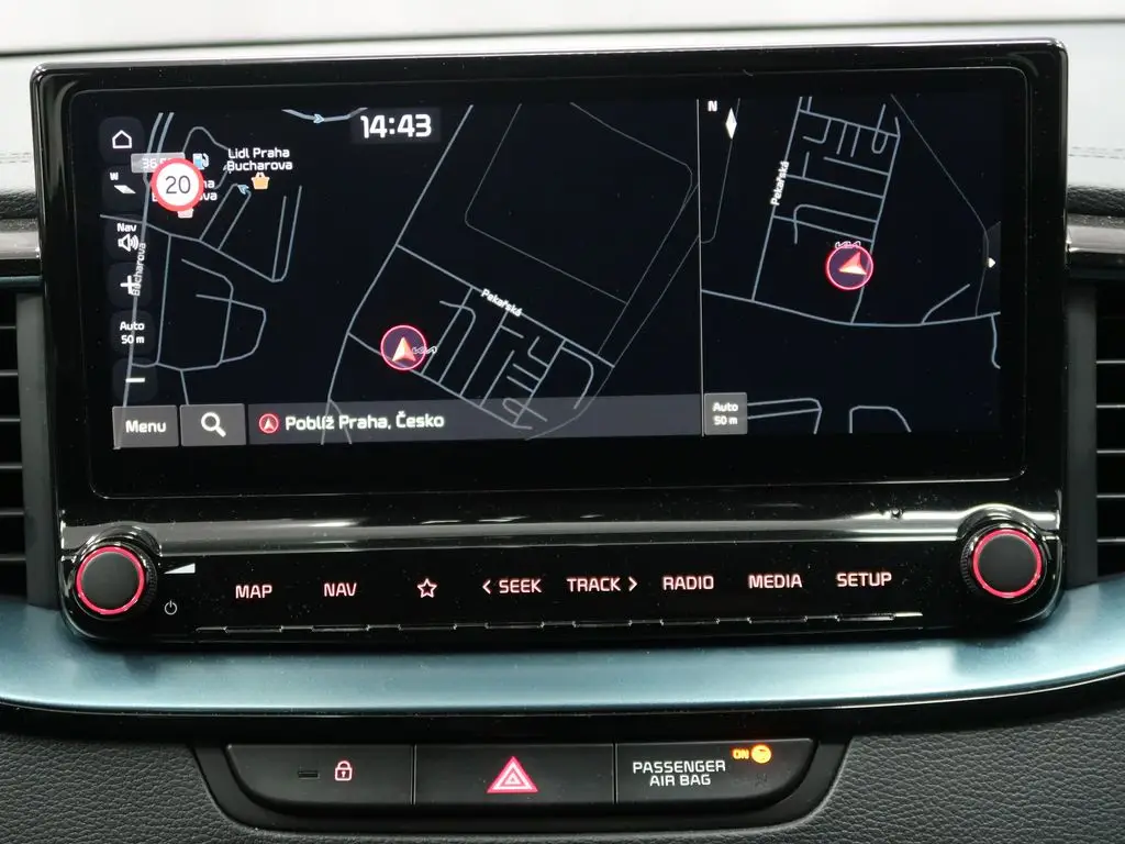 Integrovaný navigační systém. Přehledně vás dovede do cíle na velkém displeji vozu a varuje před kolonami nebo uzavírkami.