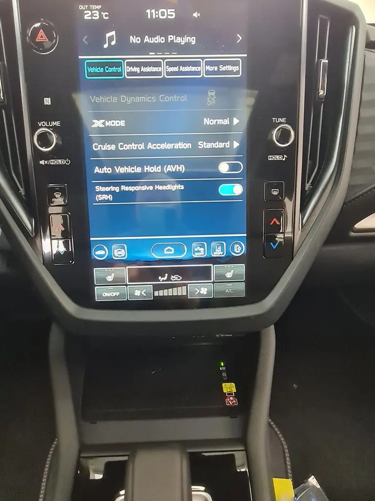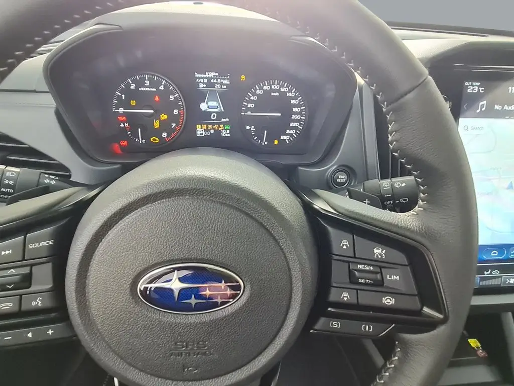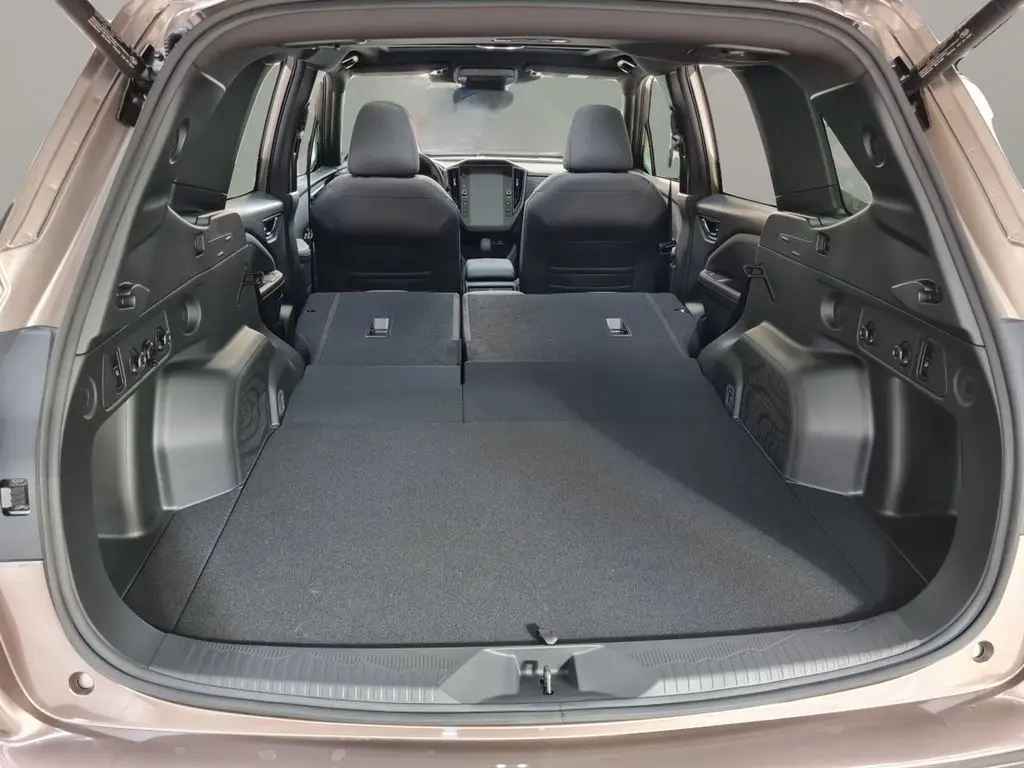 EXTERIÉR LED světlomety s aut. vyrovnáváním výšky s automatickým vypínáním a zapínáním osvětlení Tlakové vysouvací ostřikovače světlometů LED přední a zadní mlhová světla LED zadní sdružená světla Elektricky ovládaná a sklopitelná vnější zpětná zrcátka Automatické přední stěrače s dešťovým senzorem Zatmavená boční zadní okna a zadní okno Privacy 18" kola z lehké slitiny Střešní ližiny s úchytnými otvory SEDADLA / ČALOUNĚNÍ Kožený volant se stříbrným prošíváním Vyhřívání volantu Látkové čalounění sedadel Vyhřívání předních sedadel Vyhřívání zadních sedadel V 6 směrech manuálně nastavitelné sedadlo řidiče a ve 4 spolujezdce Polohovatelná opěradla zadních sedadel ve třech polohách Opěradla zadních sedadel dělená v poměru 60/40 KOMFORT / POHODLÍ Keyless Access – bezklíčkové senzorové ovládání centrálního zamykání vozu a startování Stropní úložný box LED osvětlení zavazadlového prostoru LED světlo na víku zavazadlového prostoru Středová loketní opěrka na zadních sedadlech, 2 integrované držáky nápojů Dvě 12 voltové zásuvky (ve středové konzole a v zavazadlovém prostoru) Elektrické ovládání víka zavazadlového prostoru pohybem nohy pod nárazníkem Horní háčky v zavazadlovém prostoru (2×) Krycí roleta zavazadlového prostoru Úložná schránka pod podlahou zavazadlového prostoru Dojezdová opravná sada pneumatik TOPENÍ / KLIMATIZACE Dvouzónová automatická klimatizace Hlasové ovládání klimatizace Rozmrazovač stěračů předního okna Vyhřívaná vnější zpětná zrcátka Vyhřívání zadního okna s časovačem Topení a klimatizace pro zadní sedadla AUDIO A NAVIGACE 11,6palcový HD displej, navigace, audiosystém se 6 reproduktory Bezdrátové Apple CarPlay a Android Auto Přístup do vozu pomocí kódu PIN Hlasové ovládání Přední USB porty (typ A a C) a konektor AUX Zadní nabíjecí USB porty (typ A a C) za schránkou na středové konzole Bezdrátová nabíječka (středová přihrádka palubní desky) PŘÍSTROJE / OVLÁDÁNÍ V obou osách nastavitelný volant Řadicí páčky pod volantem JÍZDNÍ SYSTÉMY SI-DRIVE – systém režimů motoru a převodovky (SUBARU Intelligent Drive) X-MODE se dvěma režimy Hill Descent Control – systém pro sjíždění svahu Auto Vehicle Hold – systém pro stání bez stisknutého pedálu brzdy Vehicle Dynamics Control – stabilizační systém Towing Vehicle Dynamics Control Systém – stabilizace přívěsu Electronic Parking Brake – elektronická parkovací brzda EYESIGHT Předkolizní brzdový systém Přední předkolizní brzdový systém Autonomní nouzové řízení Adaptivní tempomat Udržování uprostřed jízdního pruhu a adaptivní vedení vozu podle vozidla vpředu Funkce zabraňující vyjetí z jízdního pruhu Asistent nouzového udržení v jízdním pruhu Systém ochrany proti neúmyslnému rozjetí Upozornění na rozjezd vozidla vpředu Inteligentní adaptivní tempomat Rozpoznávání dopravních značek Inteligentní omezovač rychlosti Manuální omezovač rychlosti EyeSight Assist Monitor High Beam Assist (HBA) – asistent dálkových světel BEZPEČNOST Přední airbagy Přední boční airbagy (řidič a spolujezdec) Hlavové airbagy (přední i zadní sedadla na obou stranách) Kolenní airbag (řidič) Airbag v sedadle (spolujezdec) Středový airbag (řidič) Natáčecí světlomety SRH LED odbočovací světla Subaru Rear Vehicle Detection (SRVD) Automatické brzdění při přiblížení se k překážce při couvání RAB (Reverse Automatic Braking) Samozatmavovací vnitřní zpětné zrcátko Kamerový systém Multi View Monitor 360° Zadní couvací kamera Systém monitorování řidiče DMS (Driver Monitoring System) e-Call (systém tísňového volání) Systém nouzového zastavení Systém kontroly tlaku v pneumatikách (TPMS) Ukazatel nezapnutých bezpečnostních pásů Výškově nastavitelné horní úchyty bezpečnostních pásů (řidič a spolujezdec) Uchycení dětské sedačky ISO-FIX (s horními úchyty) Dětská pojistka zadních dveří (po obou stranách) Imobilizér motoru Nástroj na rozbíjení skla při nouzové evakuaci