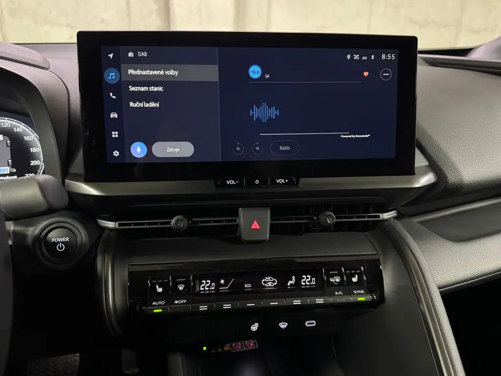 Multimediální centrum vozu s barevným displejem pro poslech hudby, rádia, ovládání funkcí a zobrazení informací o jízdě.