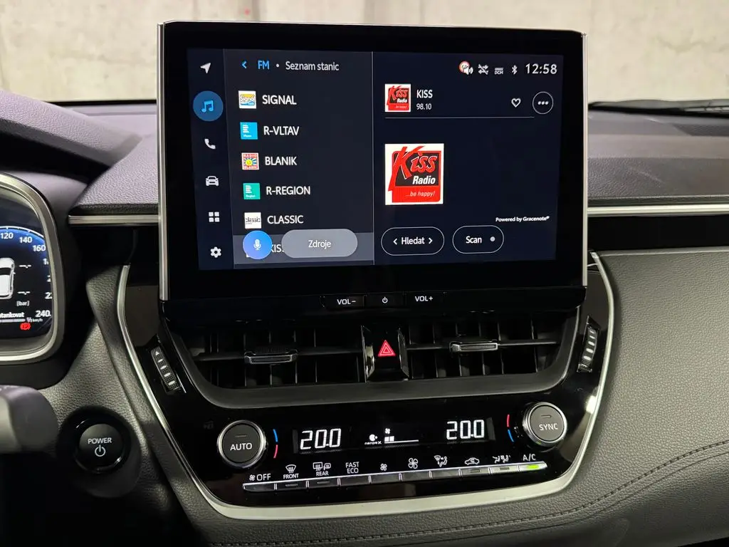 Multimediální centrum vozu s barevným displejem pro poslech hudby, rádia, ovládání funkcí a zobrazení informací o jízdě.