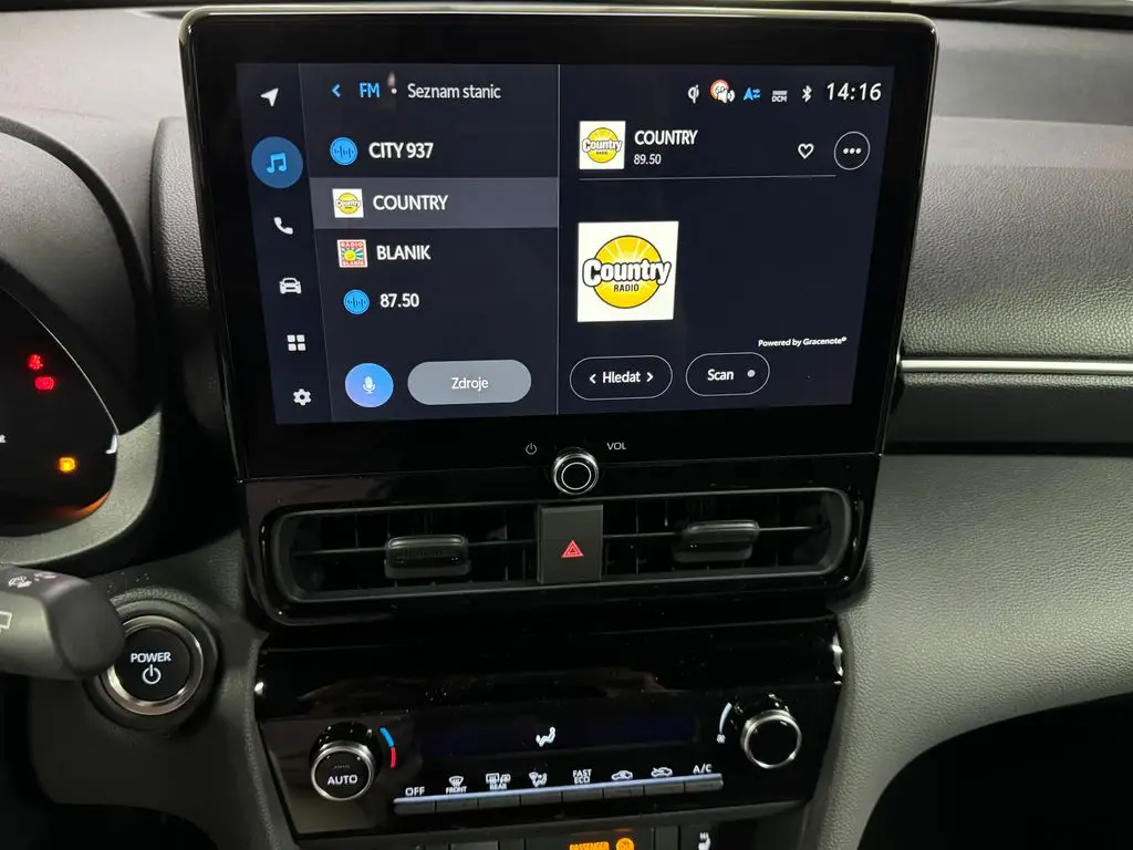 Multimediální centrum vozu s barevným displejem pro poslech hudby, rádia, ovládání funkcí a zobrazení informací o jízdě.